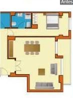 - Para conseguir un armario de mayor capacidad en el dormitorio principal, se propone el mover el tabique de separación con el salón, de manera que sin quitarle mucha superficie a éste se consigue un gran armario en el pasillo del dormitorio.